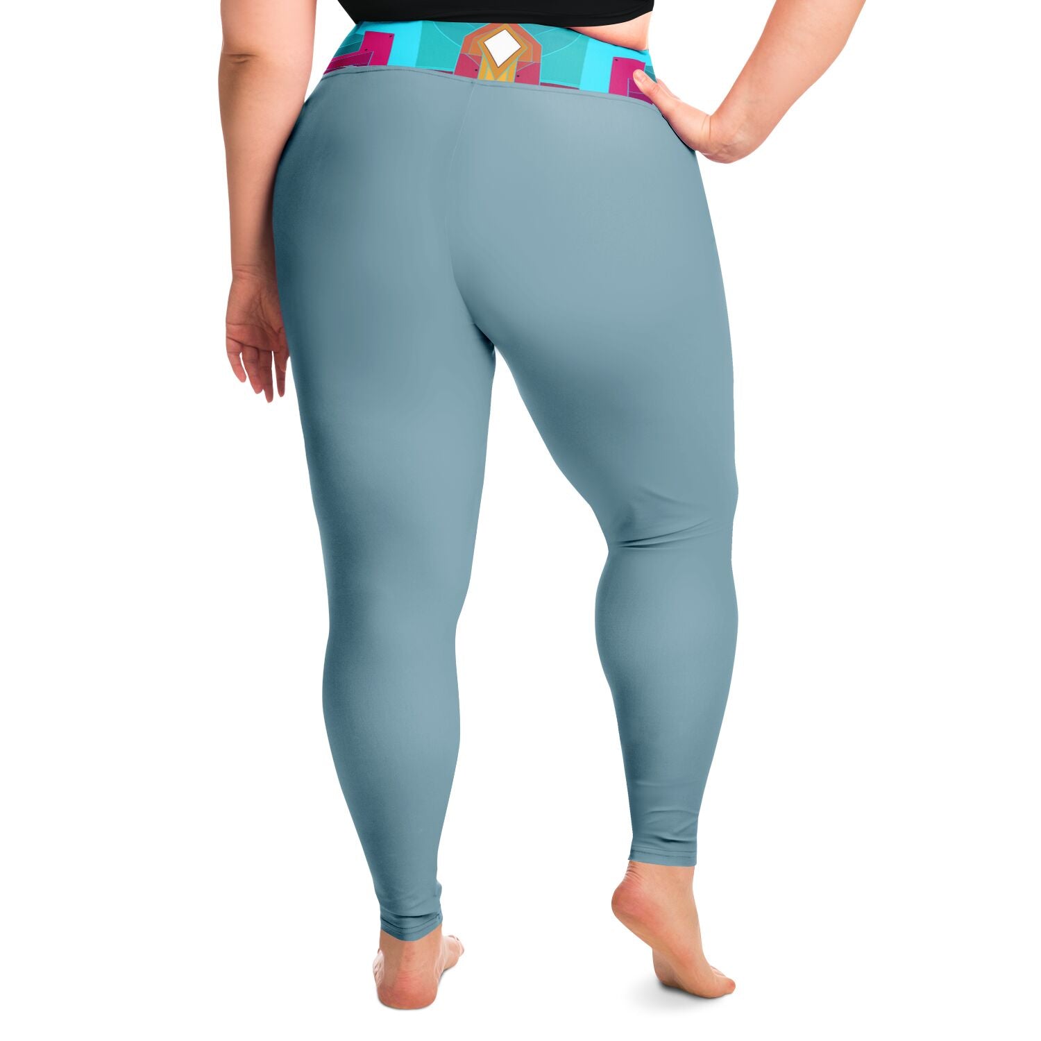 These Bali Bleu plus size leggings fuse sleek style with performance comfort. The smooth microfiber fabric and advanced four-way stretch deliver a flattering fit that moves with you—whether you’re training, traveling, or taking it easy. A high-rise waistband offers support and confidence, while the magenta and teal detailing from the collection adds unmistakable distinction.