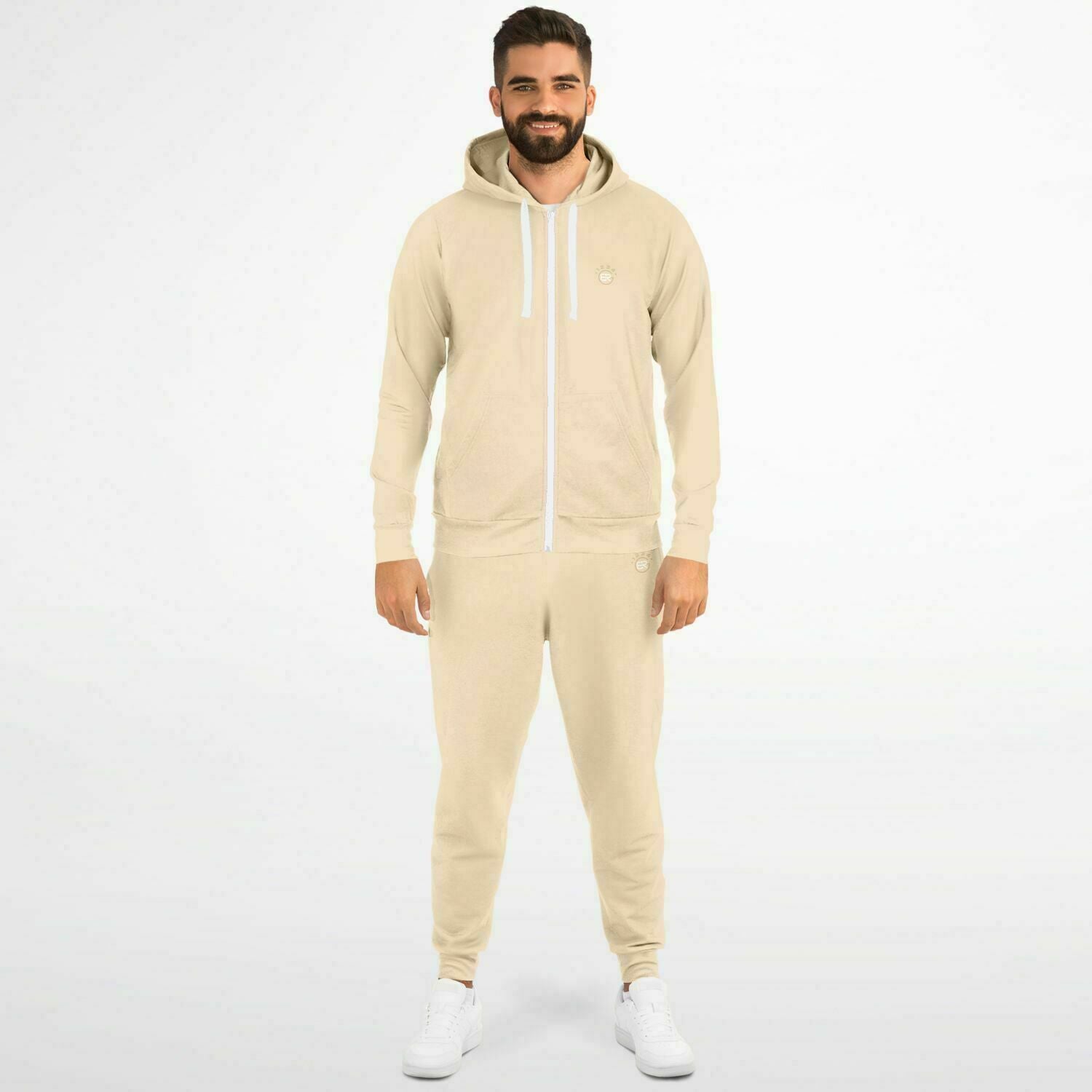 Your stylish designs will definitely be on-point with this fashion ziphoodie and jogger set. The ziphoodie comes with a double layer hood and a kangaroo pocket, while the jogger comes with two side pockets.